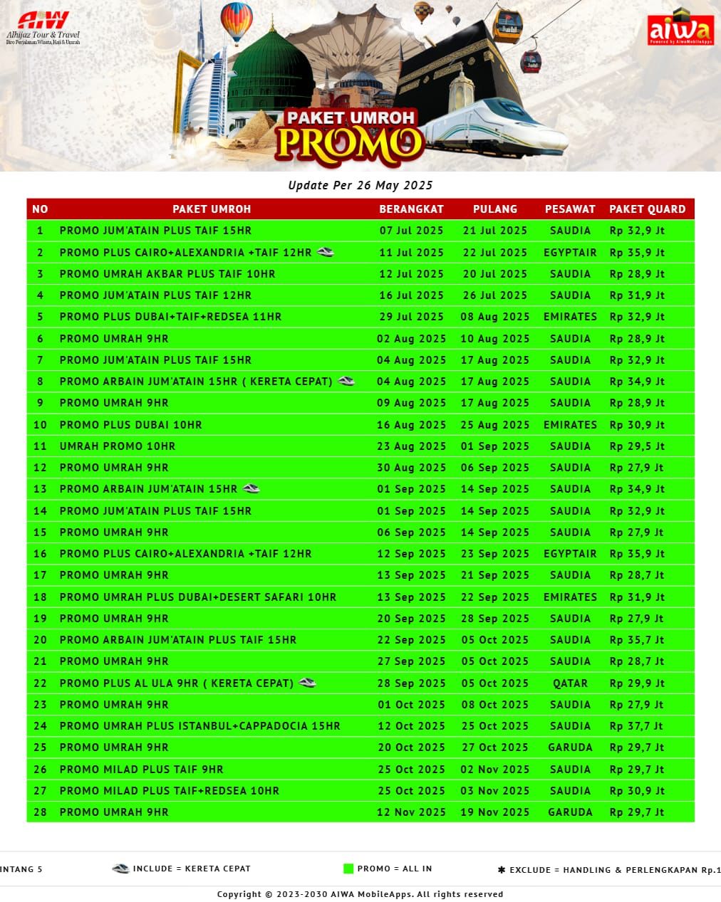 Seluruh paket umroh sudah tertera tanggal berangkat, nomor pesawat & Itinerary perjalanan.